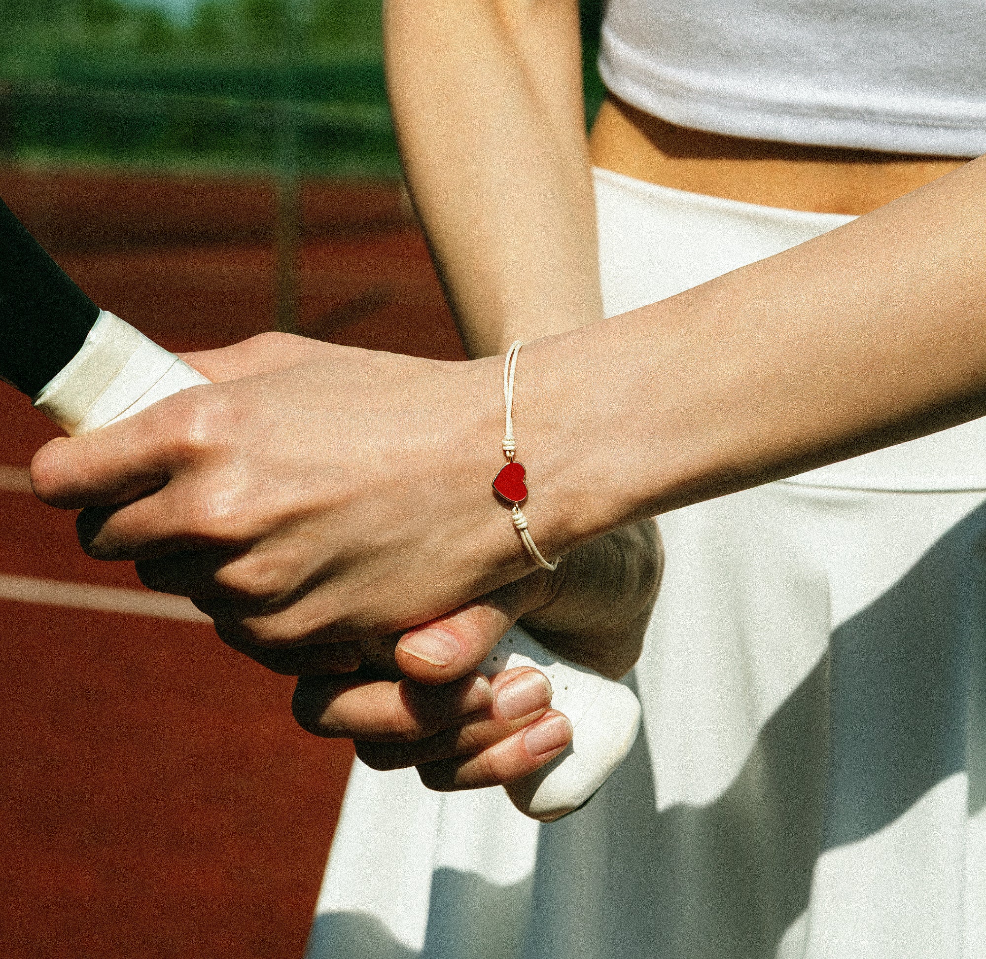 Bracciale cordino con cuore smaltato rosso
