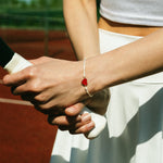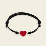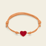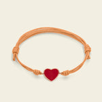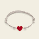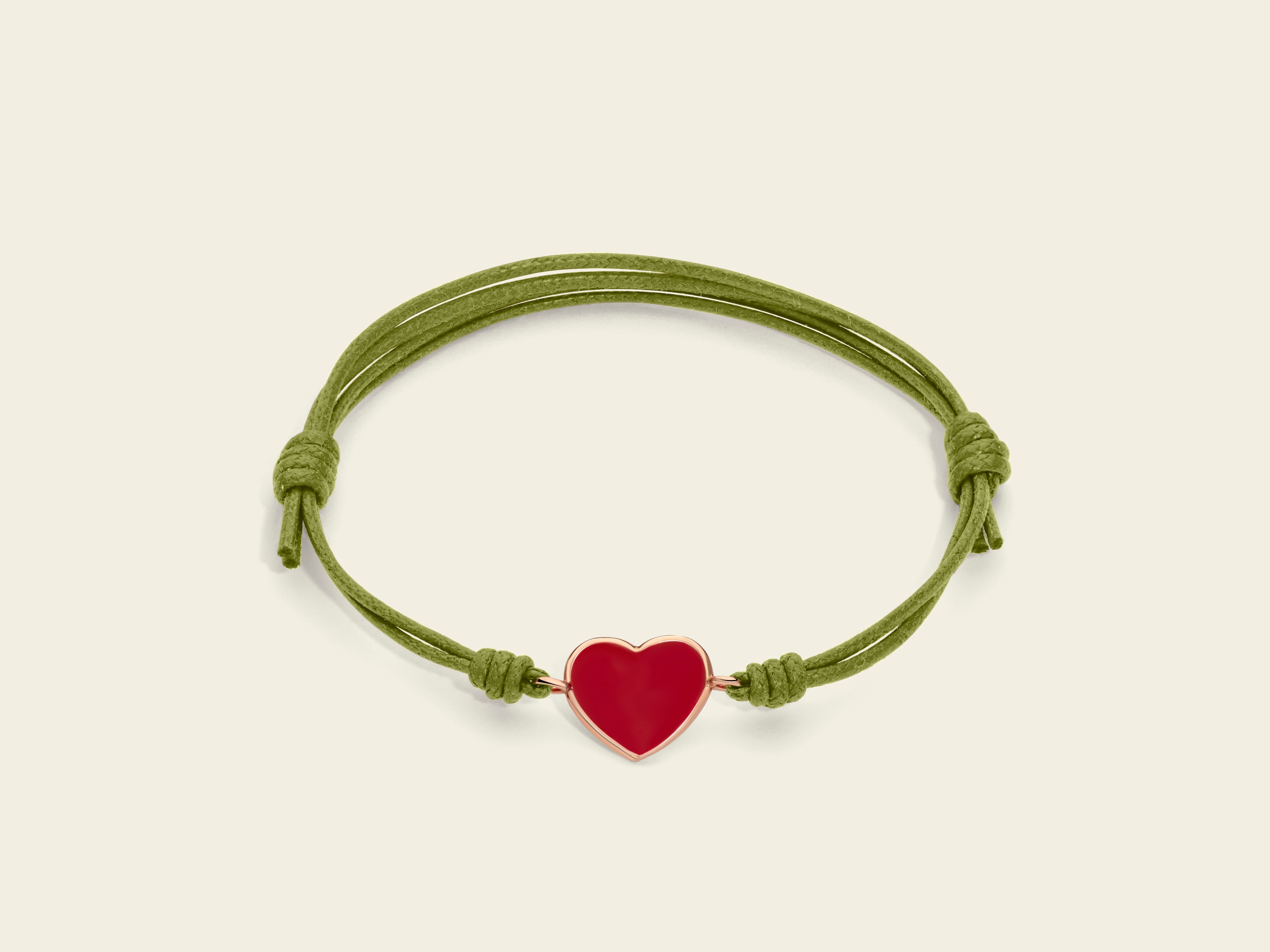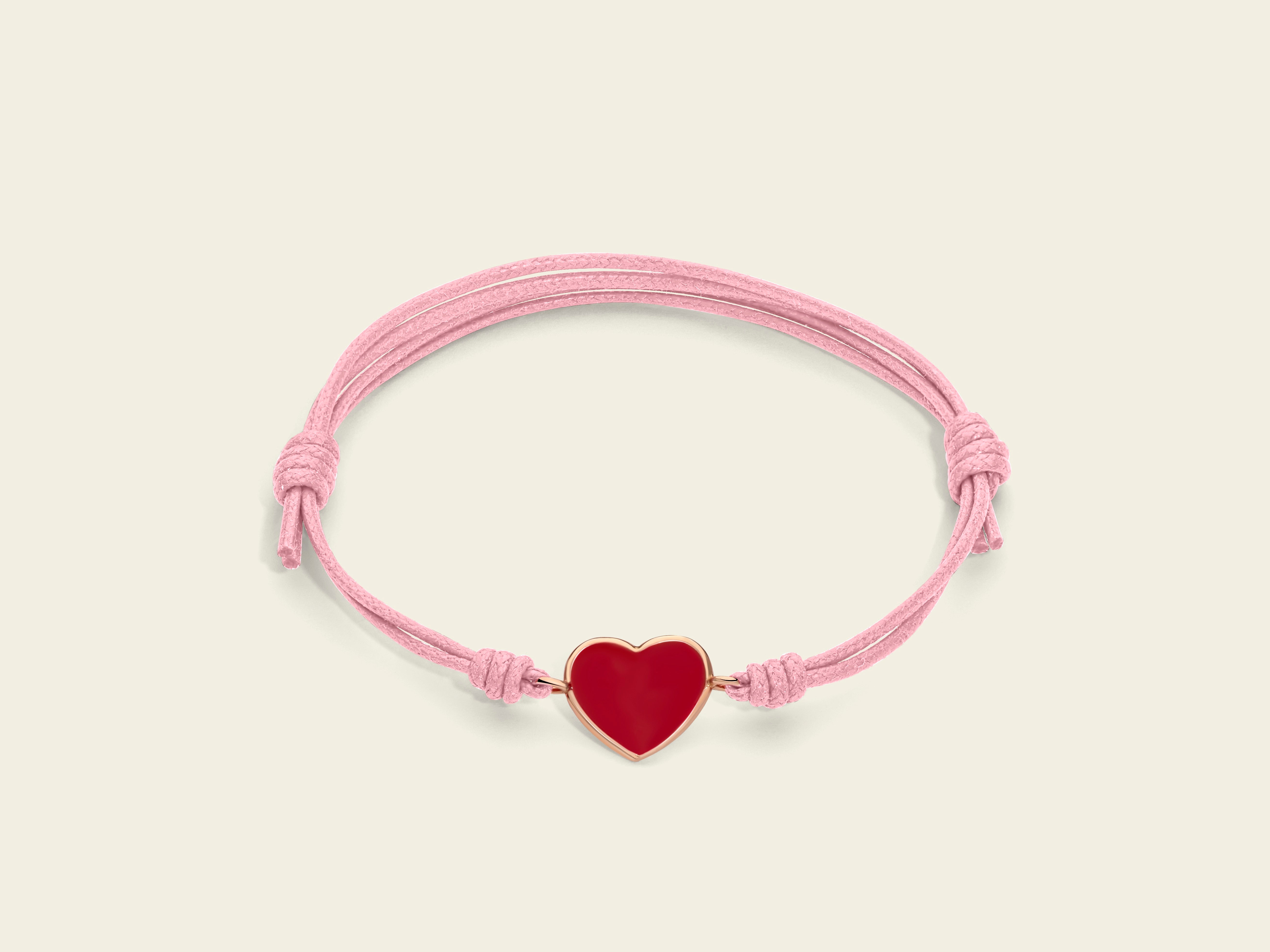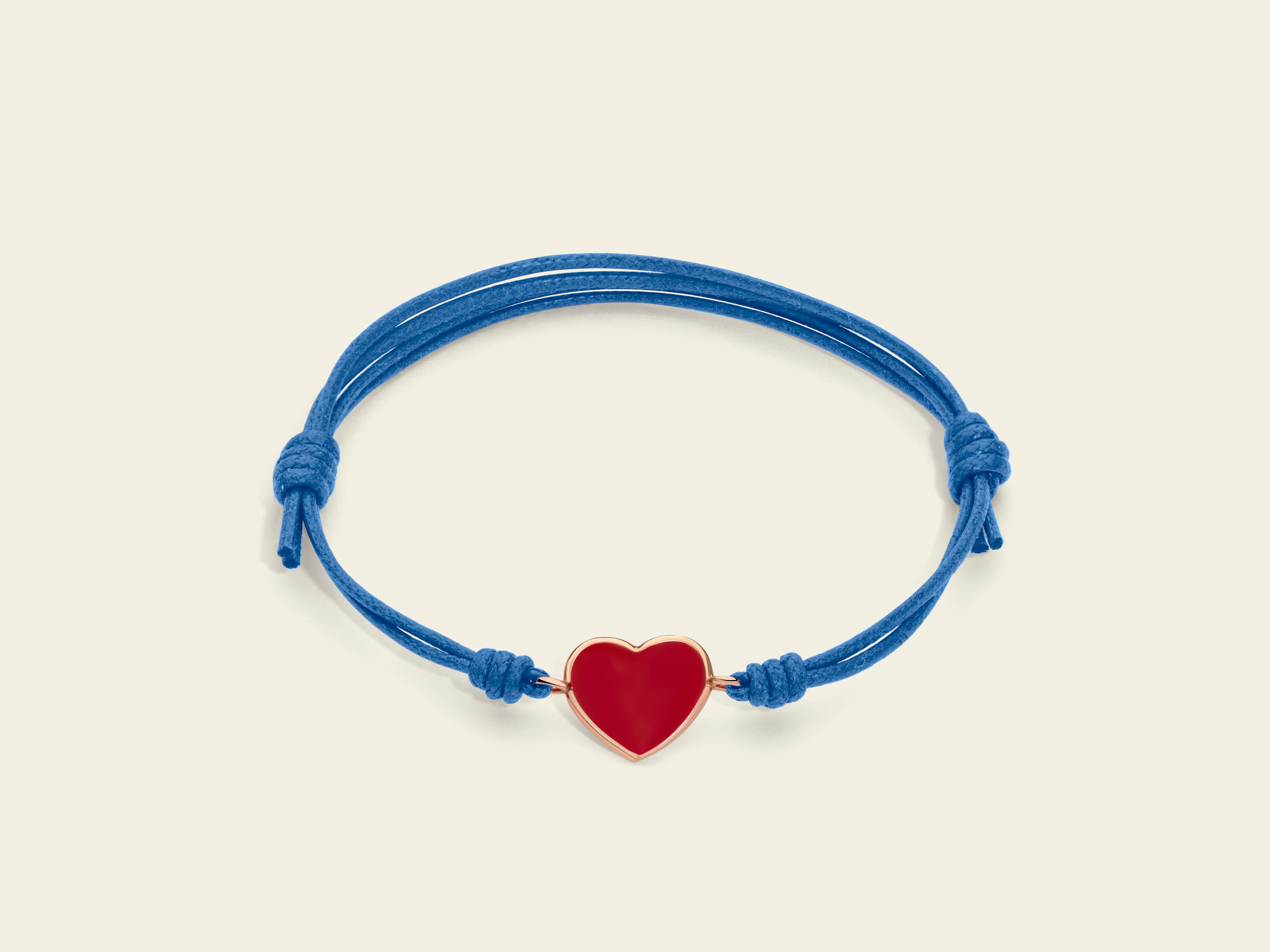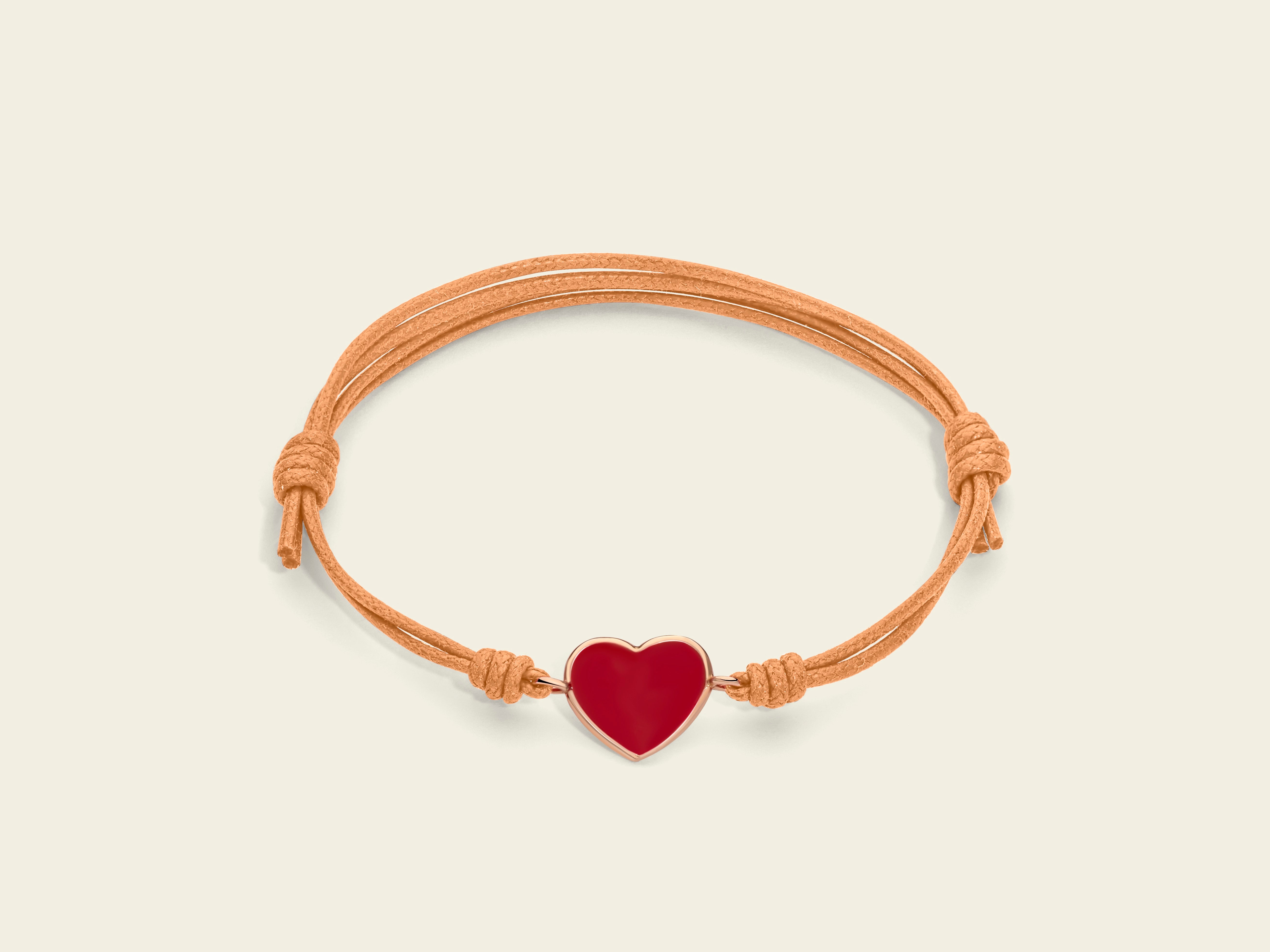 Follow the beat of your heart and fall in love every day with the jewellery in the Cuore collection. The cord bracelet features an 18k gold and red enamel heart in the centre. Wear it on its own or combined with other jewellery from the Cuore collection.