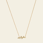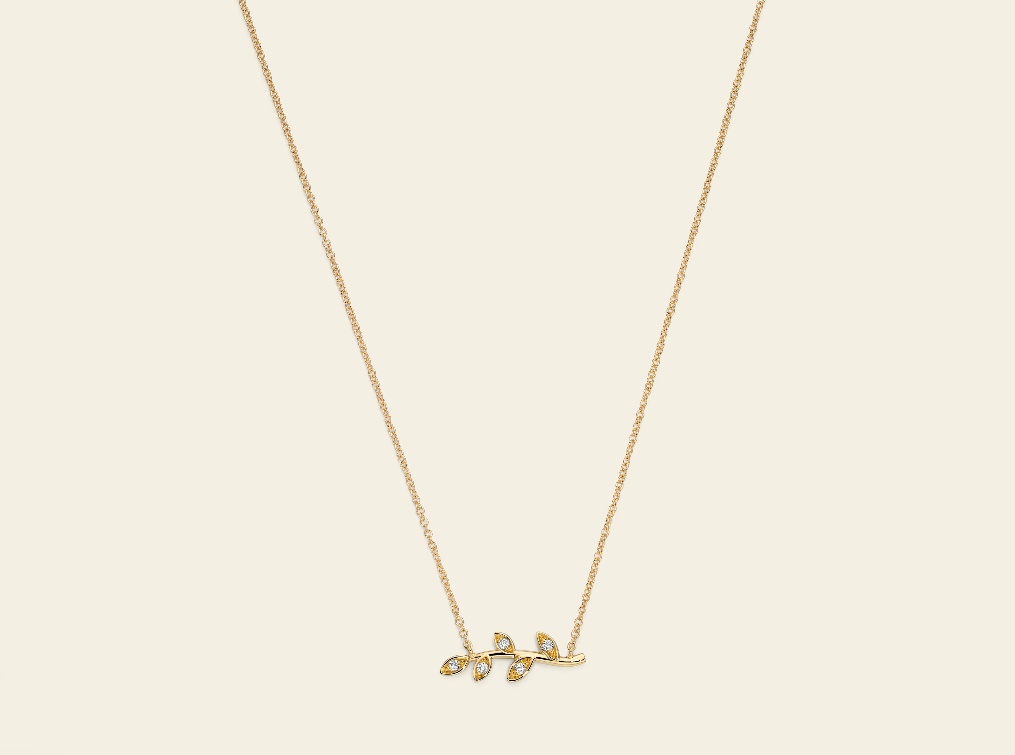 Flora necklace with branch featuring leaves and diamonds