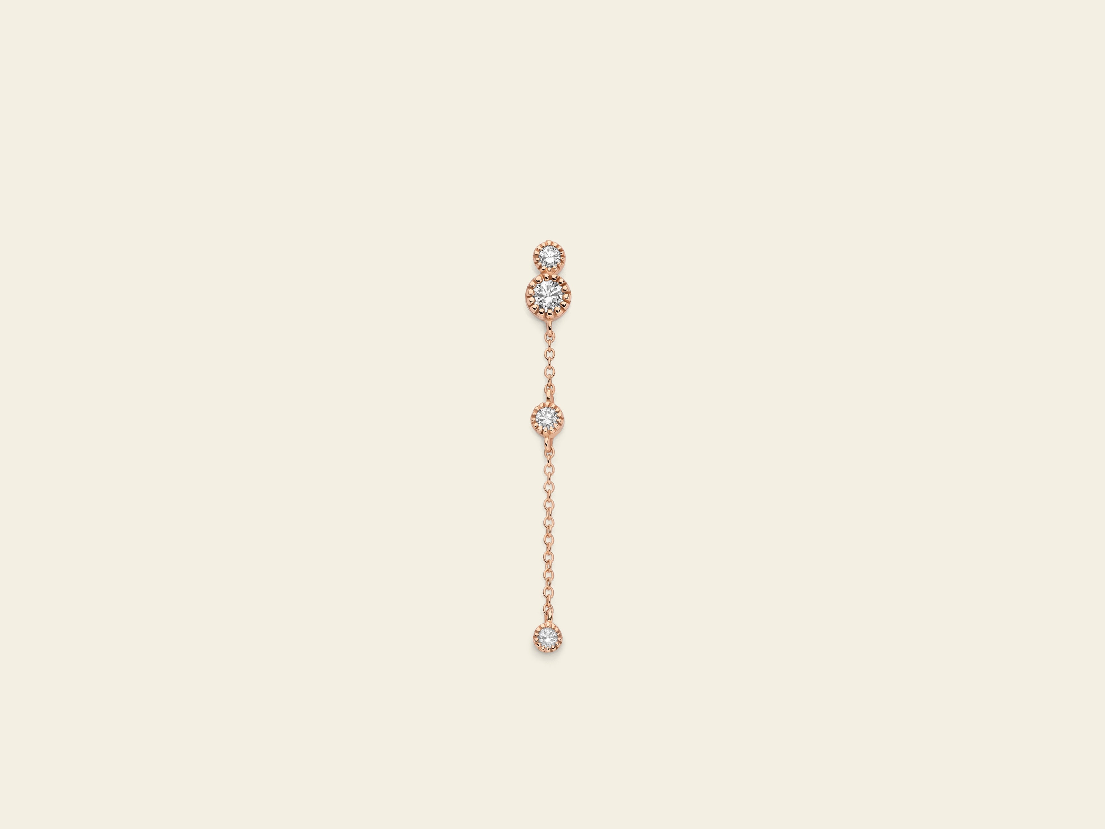 A spot of light on you. The short drop earring from Marco Gerbella Dots collection made of 18 kt rose gold and white diamonds tell us that even the most minimal details can shine in an extraordinary way.