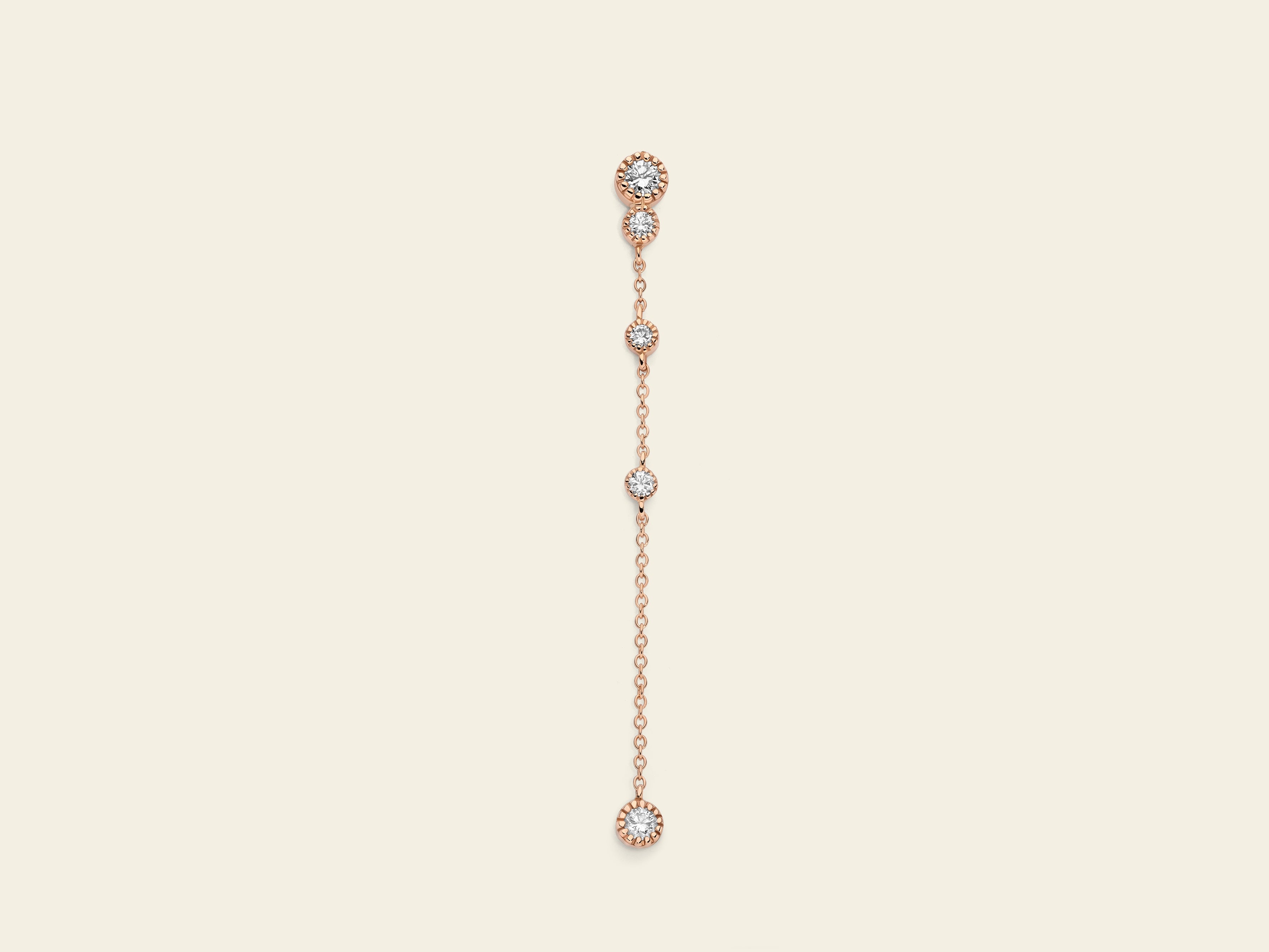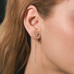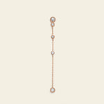 A spot of light on you. The long drop earring from Marco Gerbella Dots collection made of 18 kt rose gold and white diamonds tell us that even the most minimal details can shine in an extraordinary way.