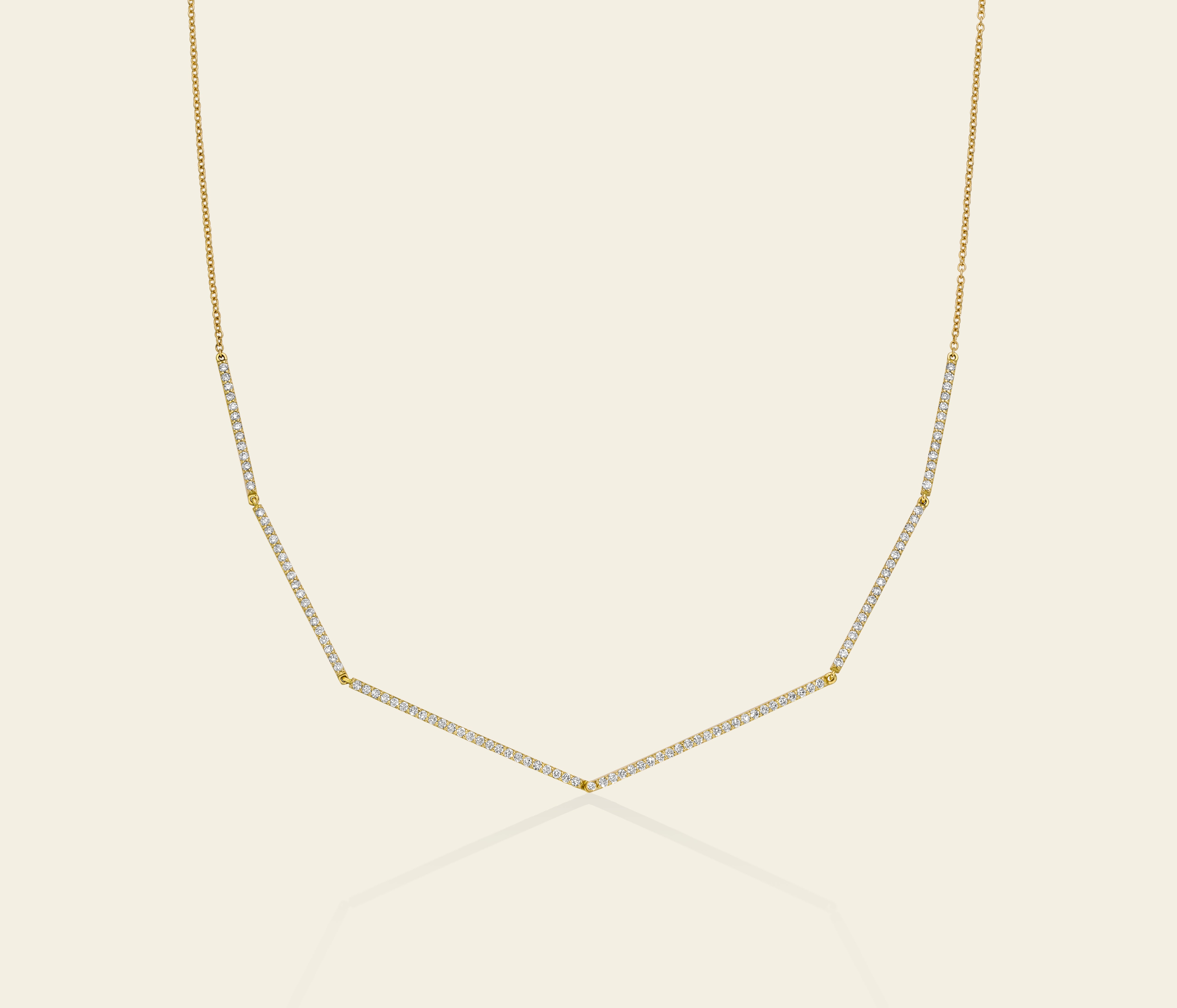 Refined reflections of light. This necklace from the Barrette Collection by Marco Gerbella is crafted in 18kt gold and features geometric elements set with white diamonds. Minimal and sophisticated, it’s the perfect choice for all your special occasions.