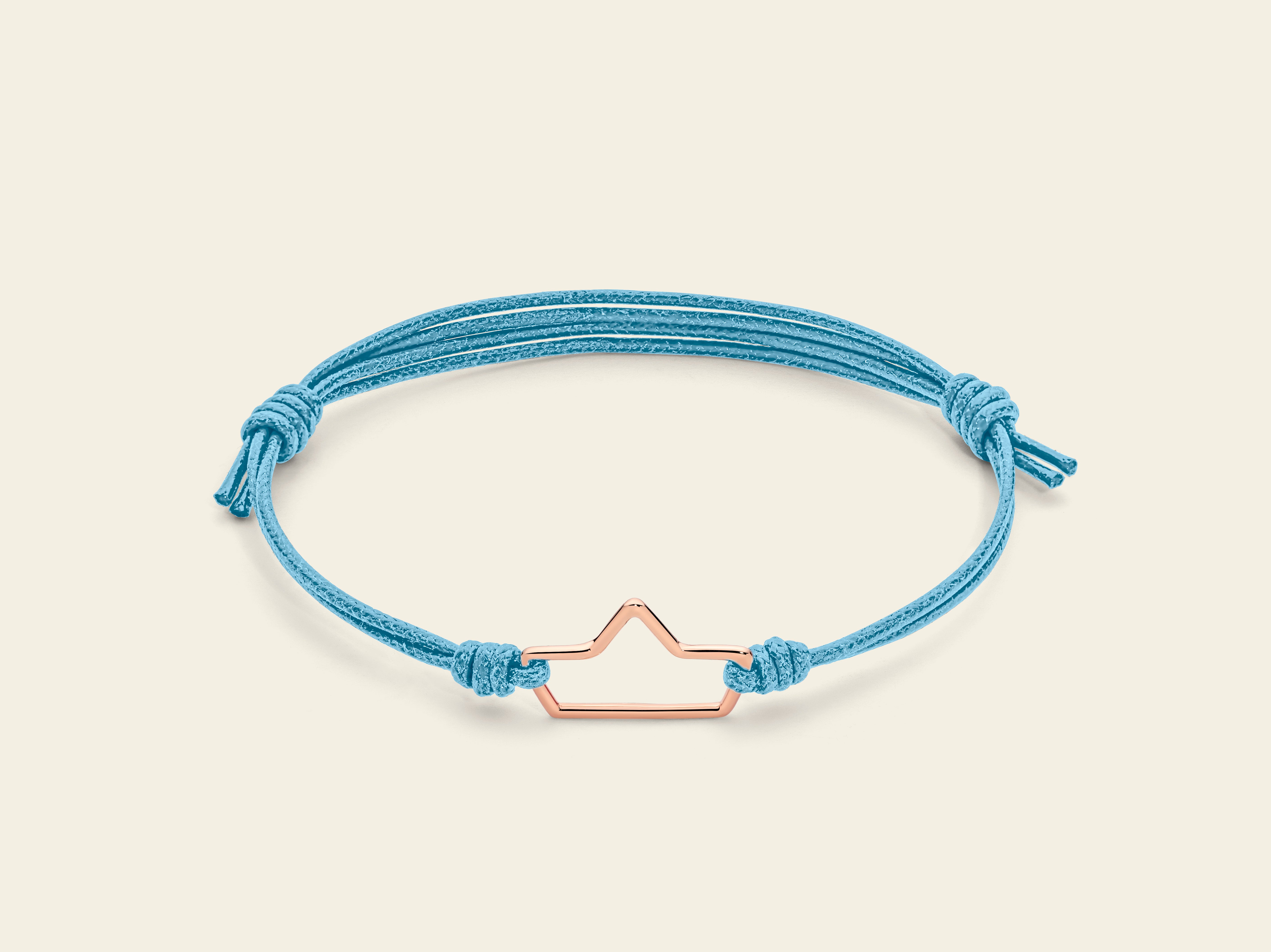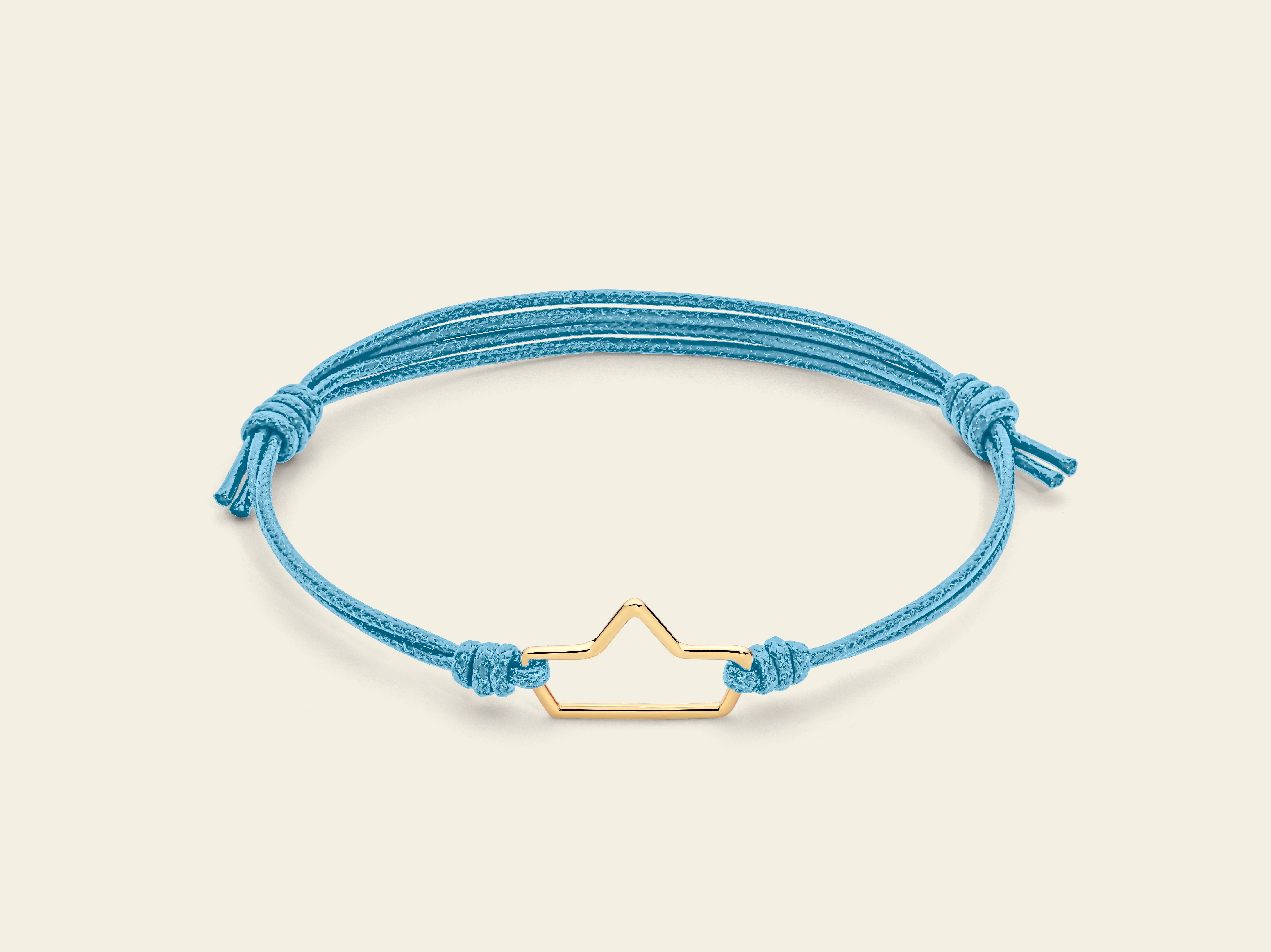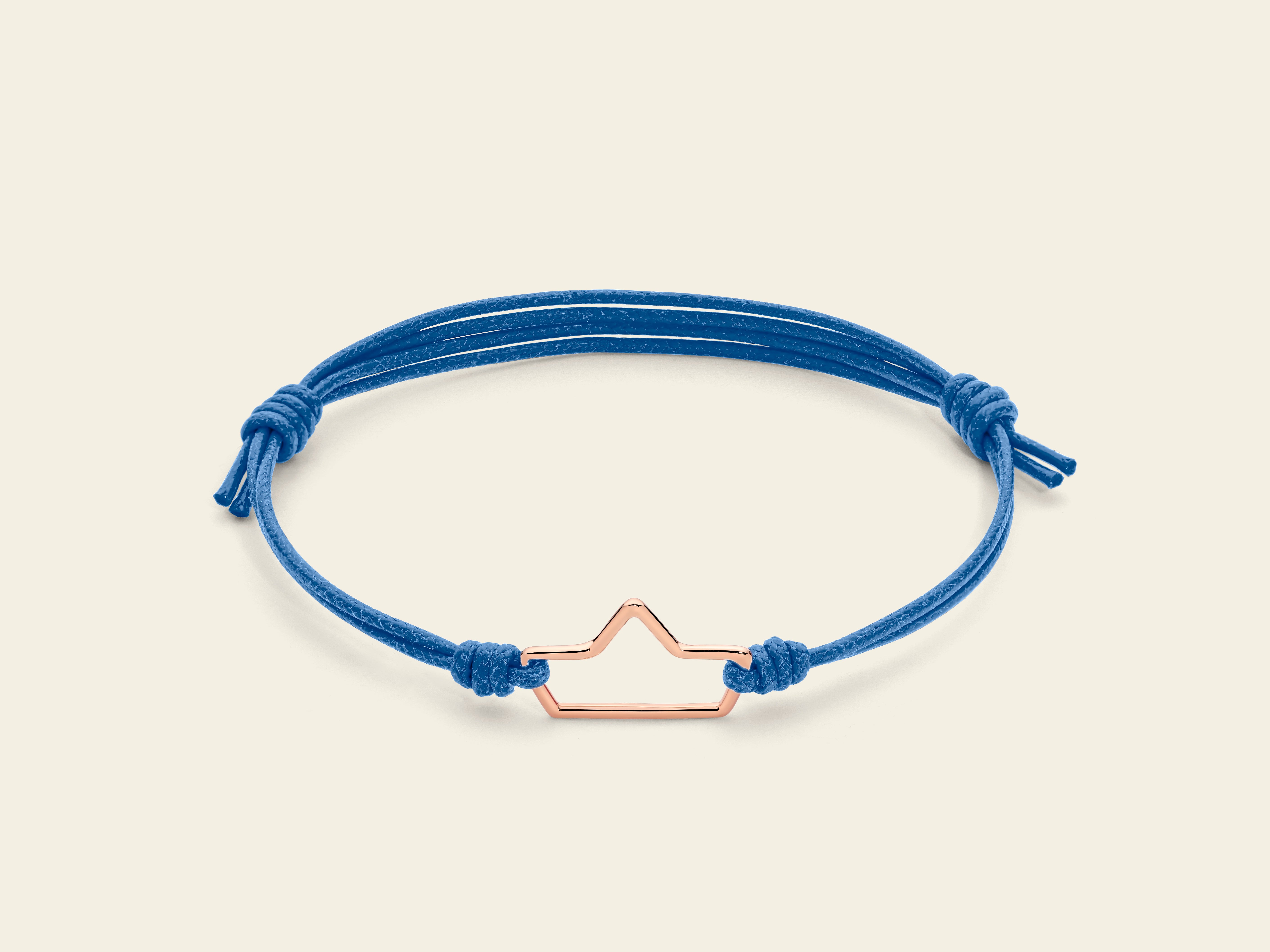 Il mare, azzurro e profondo, è l'elemento da cui nasce la Collezione Nostro Mare di Marco Gerbella. Il bracciale con cordino è arricchito da una barchetta realizzata in oro 18 kt. Un gioiello che aspetta solo di essere indossato e abbinato agli altri gioielli della collezione Cordino.