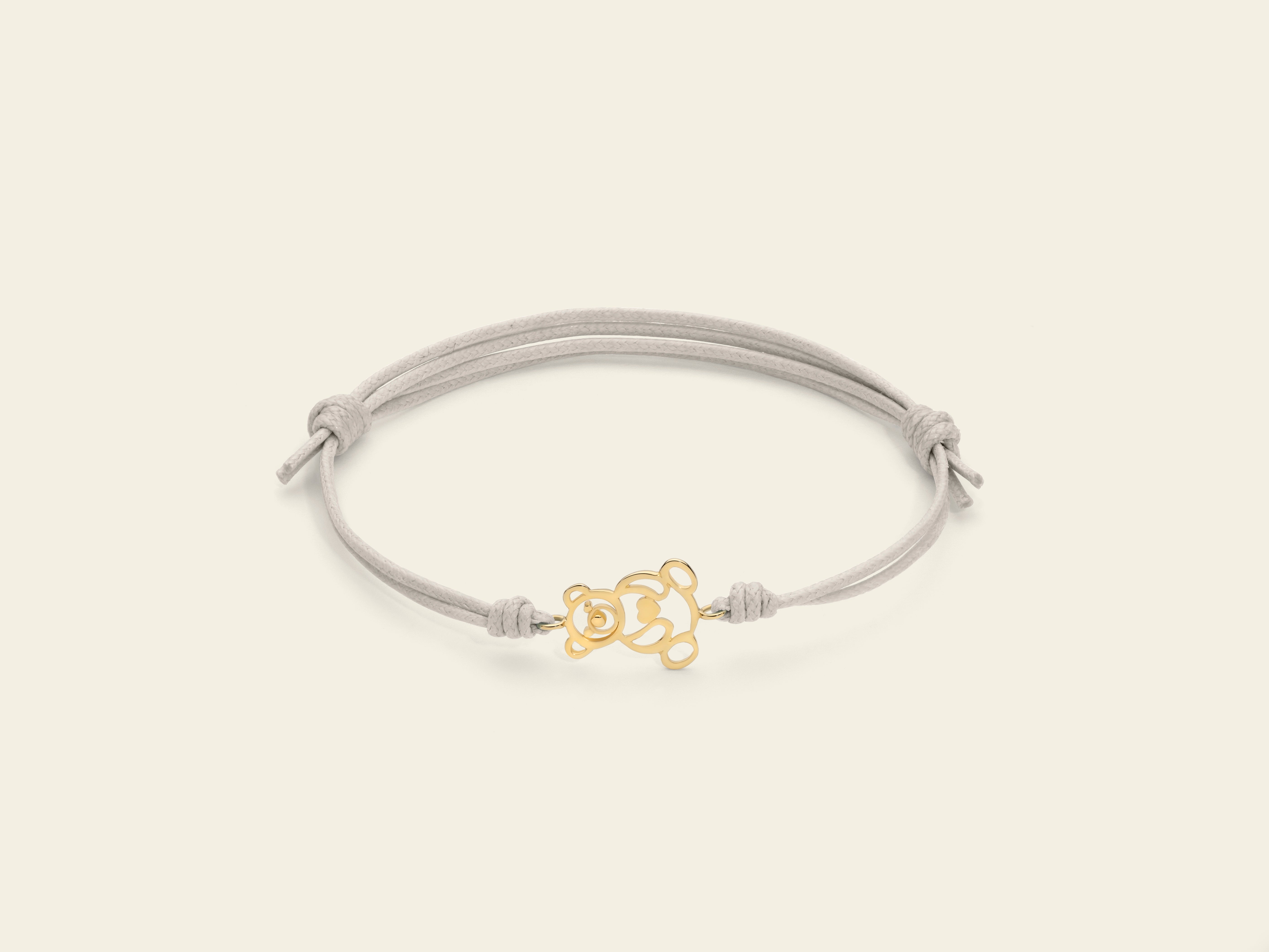 Gli elementi naturali sono da sempre una fonte d'ispirazione per i gioielli Marco Gerbella. Il bracciale con cordino della collezione Natura è decorato con un tenero orsetto realizzato in oro 18 kt.