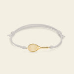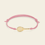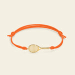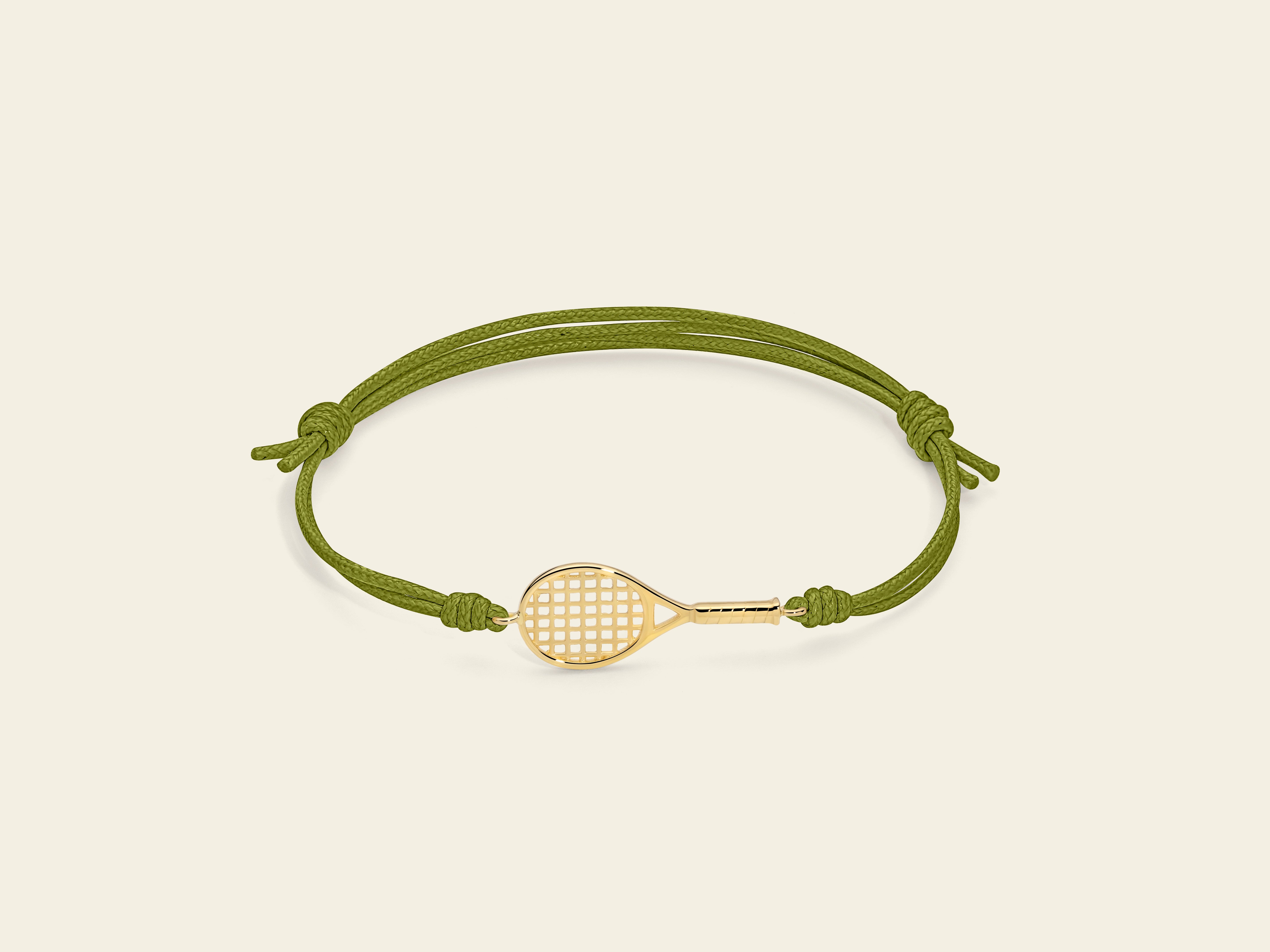 Emblema di buona sorte i gioielli della Collezione Buona Fortuna regalano energia e positività. Il bracciale con cordino presenta al centro una racchetta realizzata in oro 18 kt. Indossalo da solo o sovrapponilo con altri cordini.