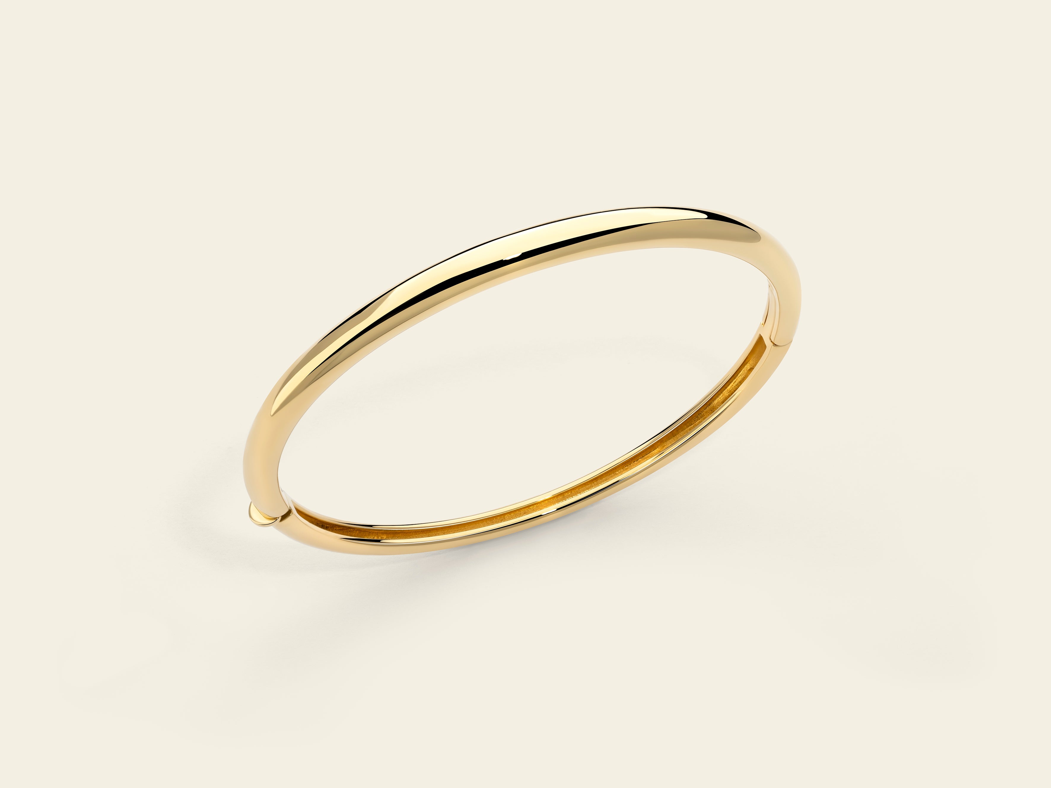 Il bracciale rigido della collezione Flow in oro 18 kt interpreta la forma in chiave moderna: volumi pieni, linee morbide e leggerezza assoluta grazie alla struttura in canna vuota. Un gioiello elegante e contemporaneo, perfetto per ogni occasione.
