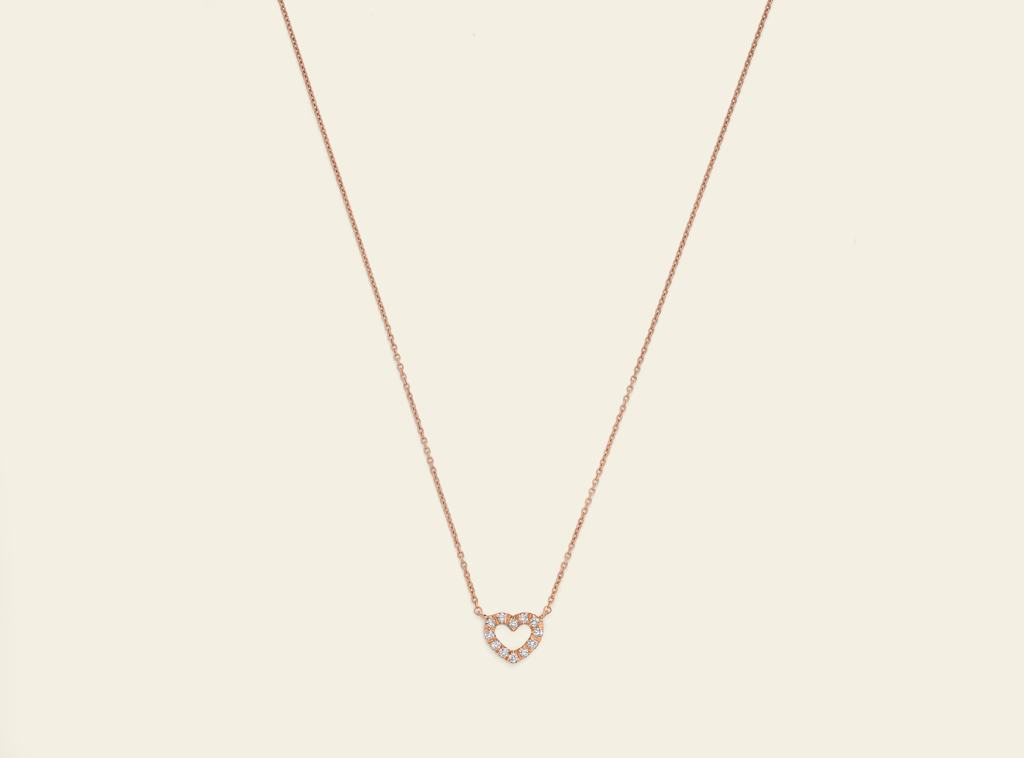 Segui il battito del tuo Cuore e innamorati ogni giorno dei gioielli della Collezione Cuore. Questa collana in oro rosa 18 kt accoglie un cuore micro a filo, delicatamente illuminato da diamanti bianchi. Minimale e raffinata, da indossare ogni giorno con naturale eleganza, da solo o in armonia con gli altri gioielli della Collezione Cuore.